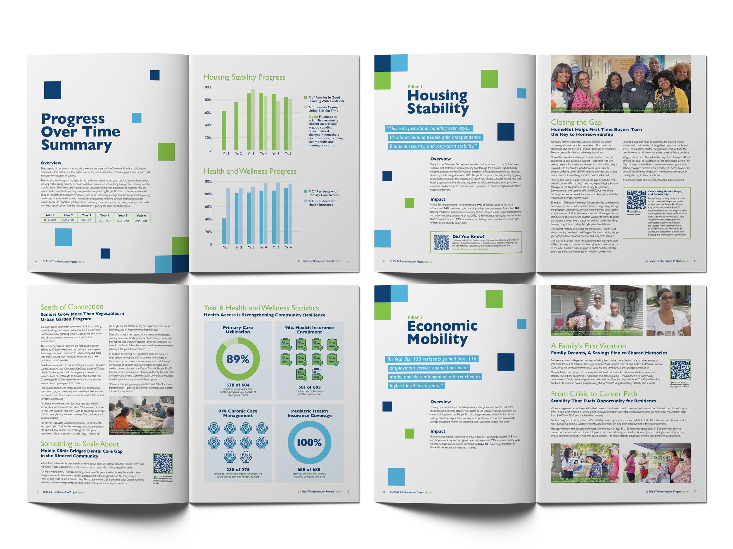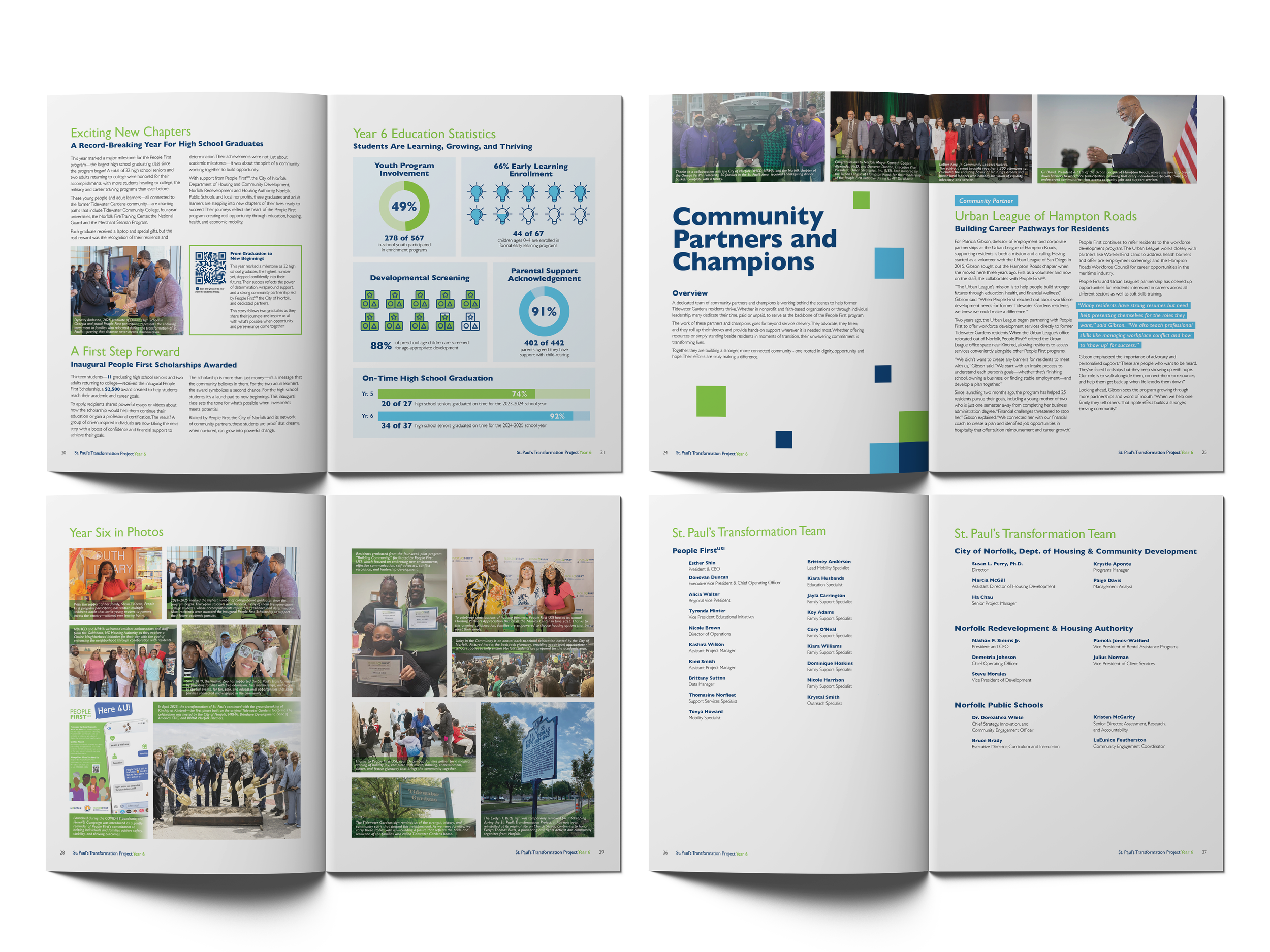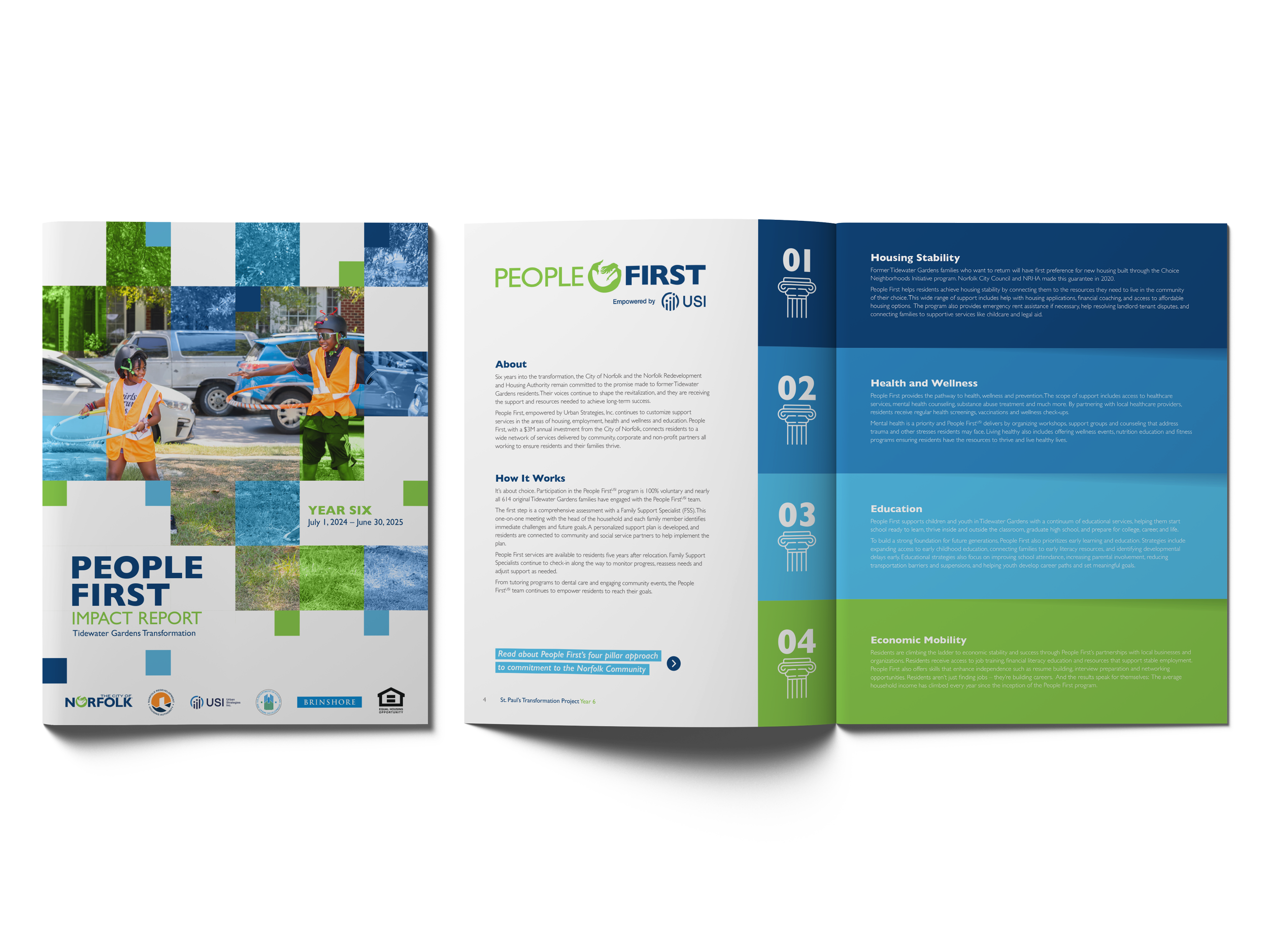The People First Year Six Impact Report is a year-long creative endeavor telling the story of the City of Norfolk, Virginia’s St. Paul’s Transformation Project, a unique partnership between city government and the Norfolk Redevelopment and Housing Authority (NRHA). Through Federal grant funding and local support, the project aims to revitalize Norfolk’s overlooked Tidewater Gardens community into a mixed-use, mixed-income community of the future. It’s an economically vibrant, environmentally resilient place where people of all incomes, backgrounds, ages and cultures can live, learn, work, play and thrive.